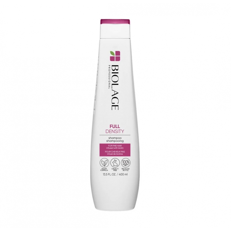 Шампонот BIOLAGE ADVANCED FULLDENSITY нежно го чисти скалпот за да ги отстрани нечистотиите што ги затнуваат фоликулите, правејќи ја косата веднаш поубава и здрава. Со комбинирана употреба на шампон и регенератор, кршливоста значително се намалува и косата изгледа пополна и поцврста.Придобивки од употребата:Косата изгледа волуменозно. Помага во зацврстување на влакното и го прави поотпорно од кршење. Ги отстранува нечистотиите.
