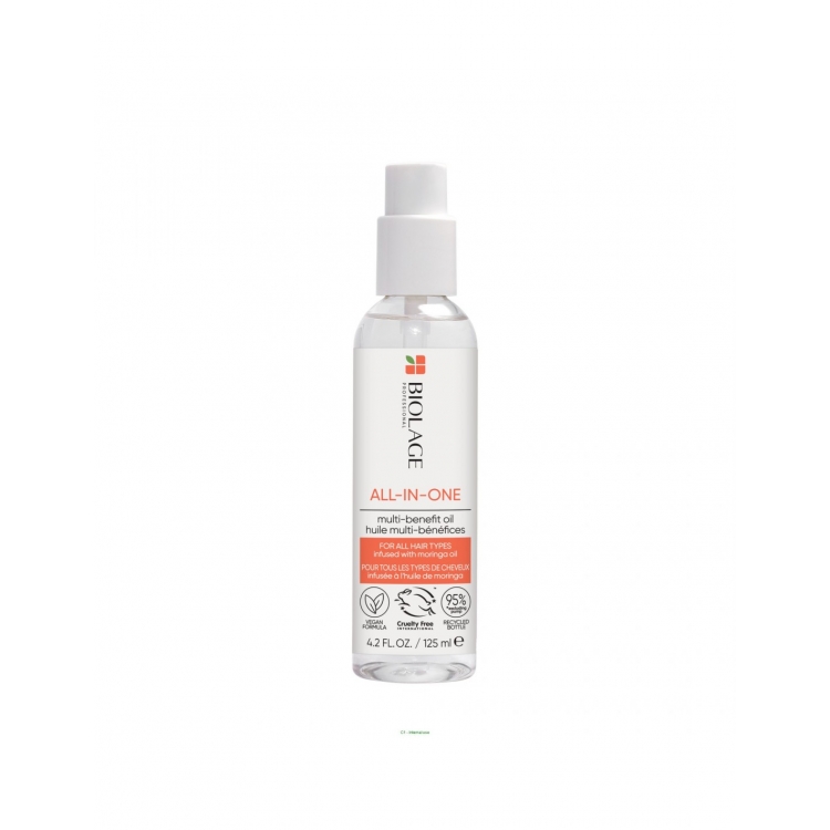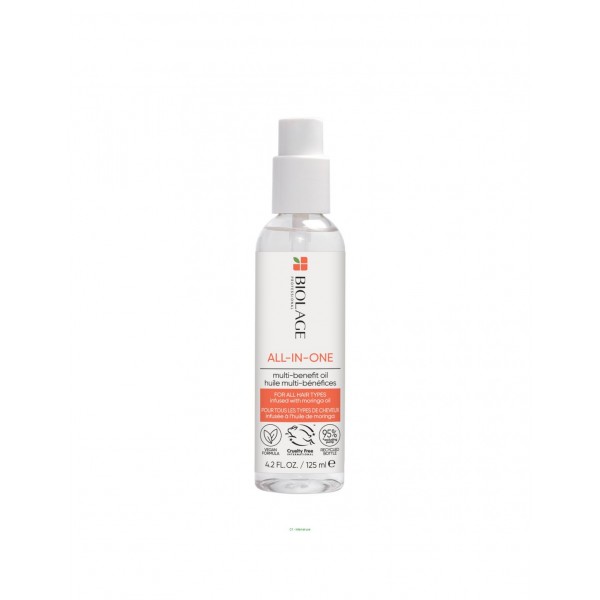 Сè-во-едно“ маслото е масло кое брзо се апсорбира за бестежинска исхрана и хидратација за сите типови коса. Има формула збогатена со масло од моринга и може да се користи за измазнување, отплеткување и контрола на разлетувањето на косата. Формула за повеќекратна употреба, исто така, може да се користи како пред-шампон третман за оставање и за ноќевање. Обезбедува сјај и мекост со лесен завршеток.Придобивки од употребата:-Брзо се апсорбира. -Го измазнува разлетувањето на косата. -Ја омекнува, отплеткува и и дава сјај на косата. -Ја потхранува и хидрира косата. -За сите типови коса, без парабени, без минерални масла.