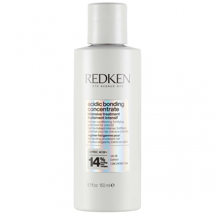 Иновативниот Acidic Bonding Concentrate третман, е интензивен пред- третман кој моќно делува врз обновување на косата со само една употреба*. Овој производ од Redken има највисока концентрација на лимонска киселина + Bonding Care Complex, и е пред-третман кој овозможува 14x помазна коса* i 63% помалку кршлива коса*. Тртманот ја зацврстува ослабената внатрешност на влакното и ја подготвува косата за следните чекори на нега со производите од Acidic Bonding Concentrate линијата за коса.