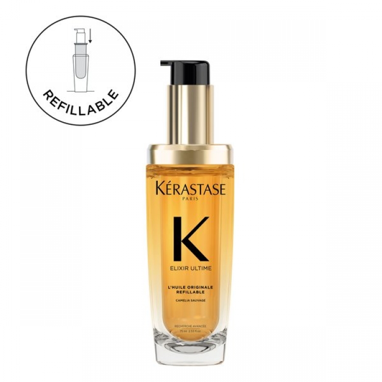 Почасти се со врвното луксузно масло Kérastase Elixir Ultime, кое сега може повторно да се полни. Збогатено со најдобрите состојки, вклучувајќи дива камелија и француска камелија, секоја капка е длабок луксузен третман за сите типови коса.