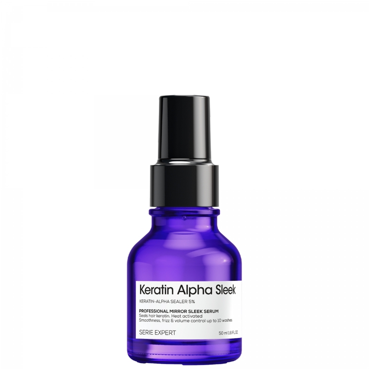 Keratin Alpha Sleek Mirror Sleek Serum by L’Oréal Professionnel, формулиран со Keratin Sealer 5%.