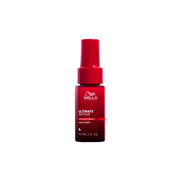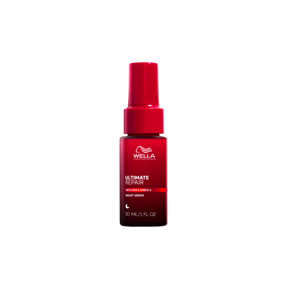 Ноќен серум за видливо корегирање на сувоста и кршењето кај оштетената коса. Омега-9 ја навлажнува, а одбранбените полимери помагаат да се заштити косата од ноќните стресни фактори како што е триењето на перницата. Придобивки: Врвниот ноќен серум помага да се заштити и оживее вашата коса додека спиете Овој лесен третман за коса има богата гел текстура, луксузен мирис и патентирана формула со Омега-9, АХА и одбранбени полимери Помага во заштита од ноќни стресови како триење на перницата, помагајќи да се намали заплеткувањето и кршењето : Разбудете се со забележливи резултати, со контрола на разлетувањето и до 6 пати помазна коса* по една ноќ РУТИНА ЗА КОСА: Комбинирајте се со Wella Professionals Ultimate Repair Miracle Hair Rescue за врвна нега на коса 24/7